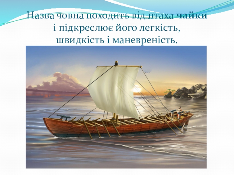 Слайд 11Назва човна походить від птаха чайки і підкреслює його легкість, швидкість