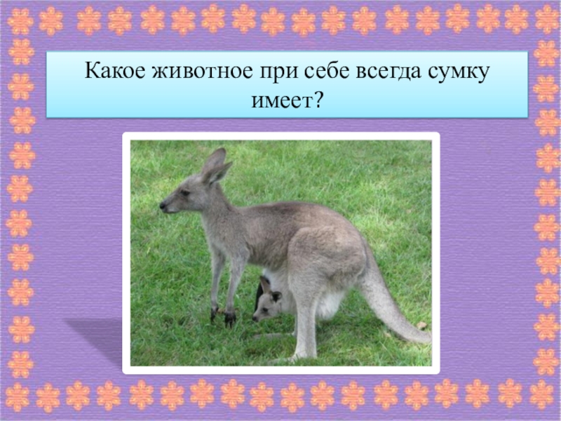 Слайд 37Какое животное при себе всегда сумку имеет?