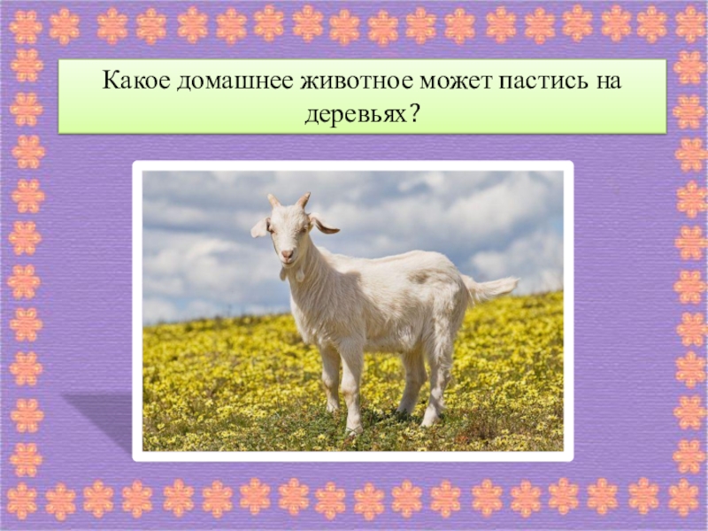 Слайд 34Какое домашнее животное может пастись на деревьях?