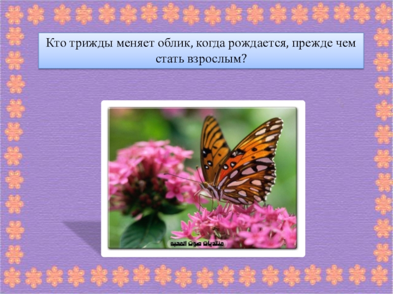 Слайд 32Кто трижды меняет облик, когда рождается, прежде чем стать взрослым?