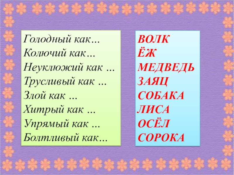 Голодный как…              Колючий как…