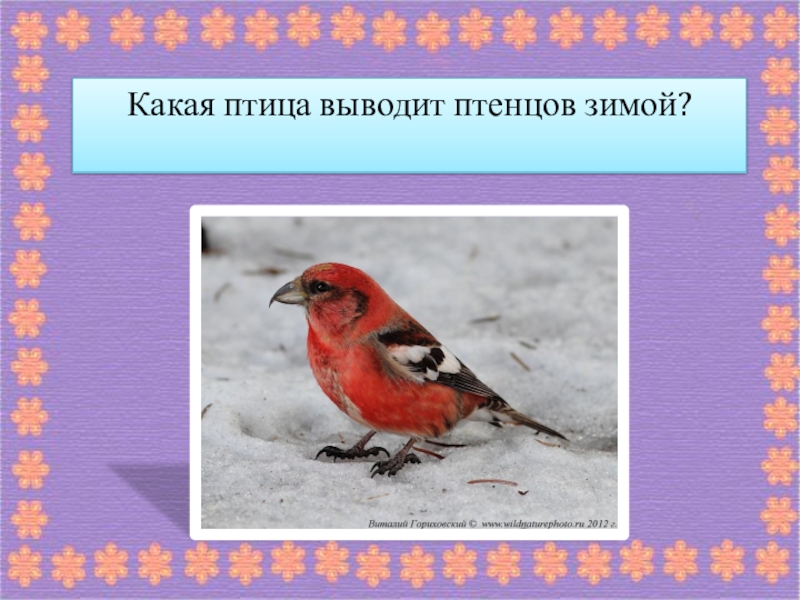 Слайд 31Какая птица выводит птенцов зимой?