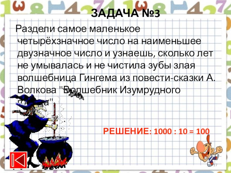 РЕШЕНИЕ: 1000 : 10 = 100
