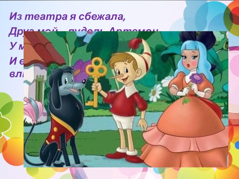 Из театра я сбежала,Друг мой – пудель Артемон. У меня прическа голубаяИ еще Пьеро в меня влюблен