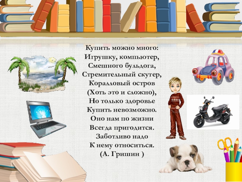 Это сайт презентаций, где можно хранить и обмениваться своими презентациями, докладами, проектами, шаблонами в формате PowerPoint с другими пользователями. Мы помогаем школьникам, студентам, учителям, преподавателям хранить и обмениваться учебными материалами.