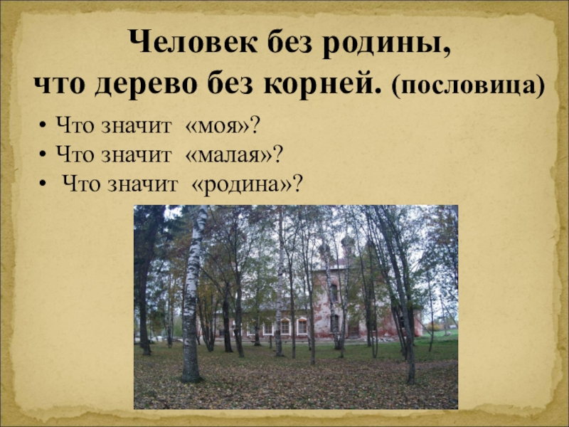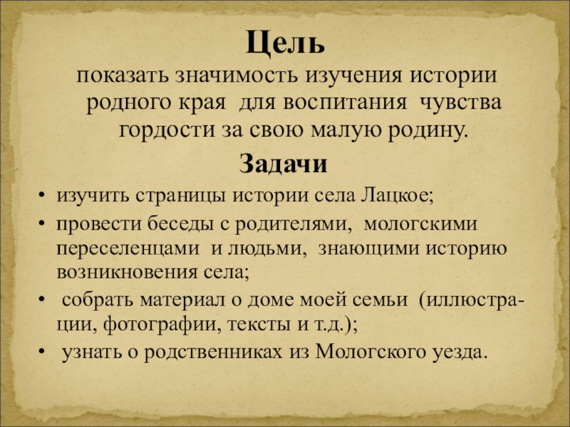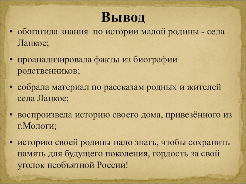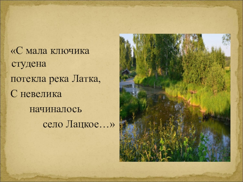 А вы знаете, где ваши корни? Вот и нам захотелось узнать об этом. А что мы знаем о своей малой родине .Село Лацкое моя малая Родина. Что значит моя? Что значит малая? Что значит Родина?