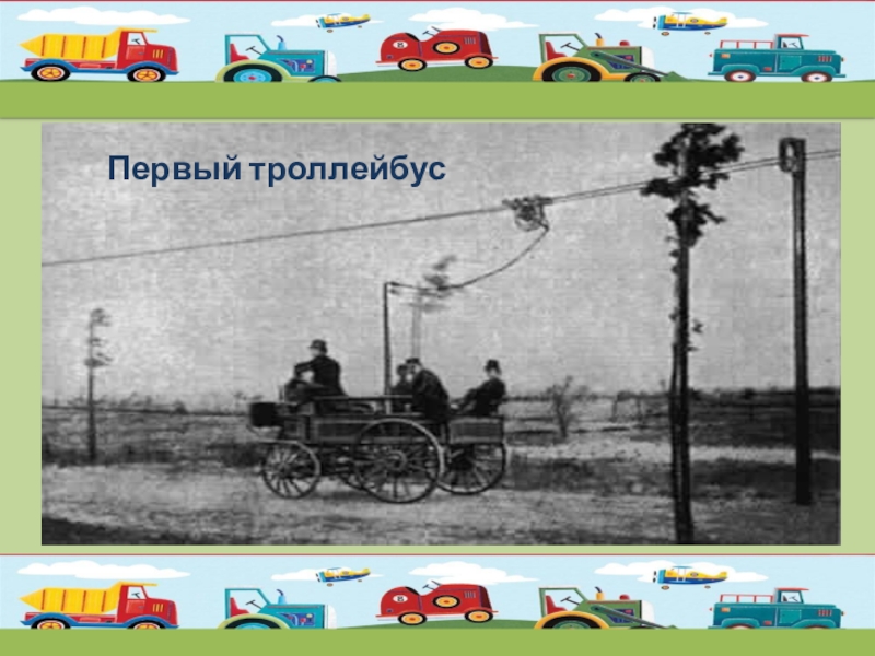 Слайд 7Первый троллейбус