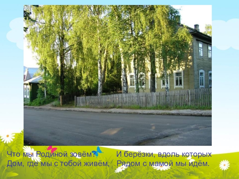Что мы Родиной зовём? И берёзки, вдоль которыхДом, где мы с тобой живём, Рядом с мамой мы идём.