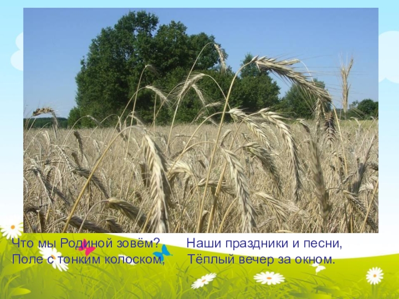 Что мы Родиной зовём?    Наши праздники и песни,Поле с тонким колоском,   Тёплый