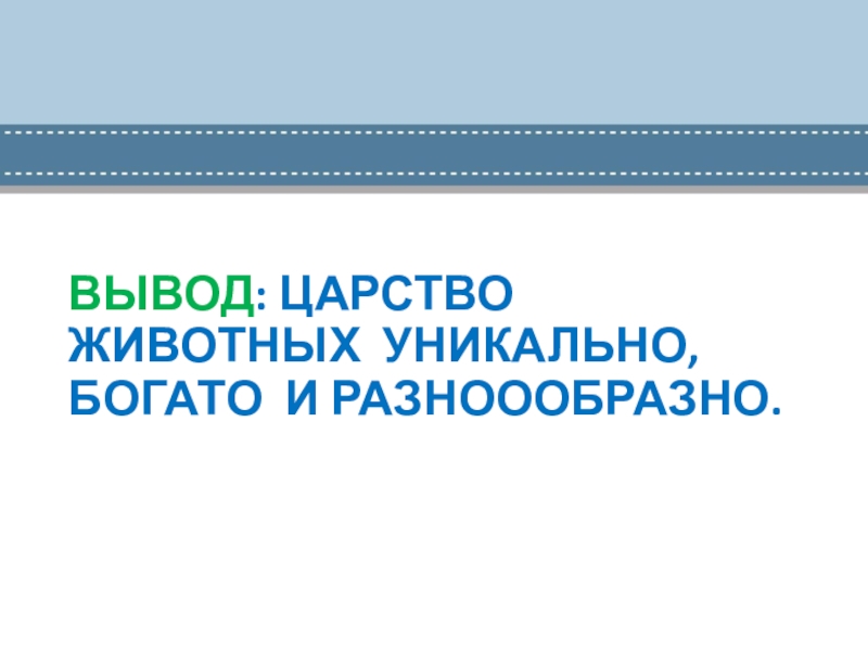 Слайд 6ВЫВОД: ЦАРСТВО ЖИВОТНЫХ УНИКАЛЬНО, БОГАТО И РАЗНОООБРАЗНО.