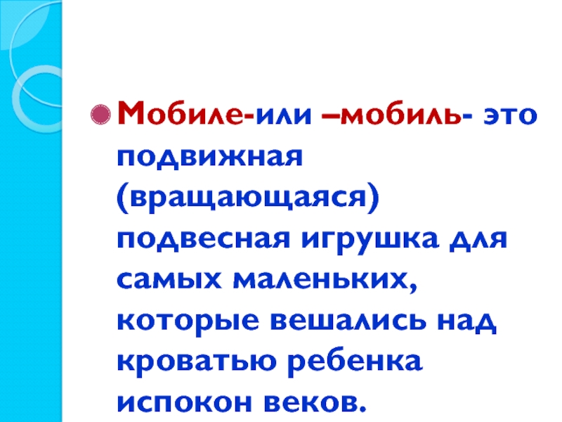 Слайд 32Мобиле-или –мобиль- это подвижная (вращающаяся) подвесная игрушка для самых маленьких,