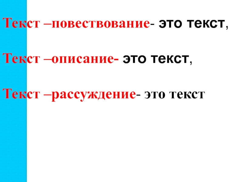 Слайд 4Текст –повествование- это текст, в котором идет рассказ о чем-то, ком-то, о