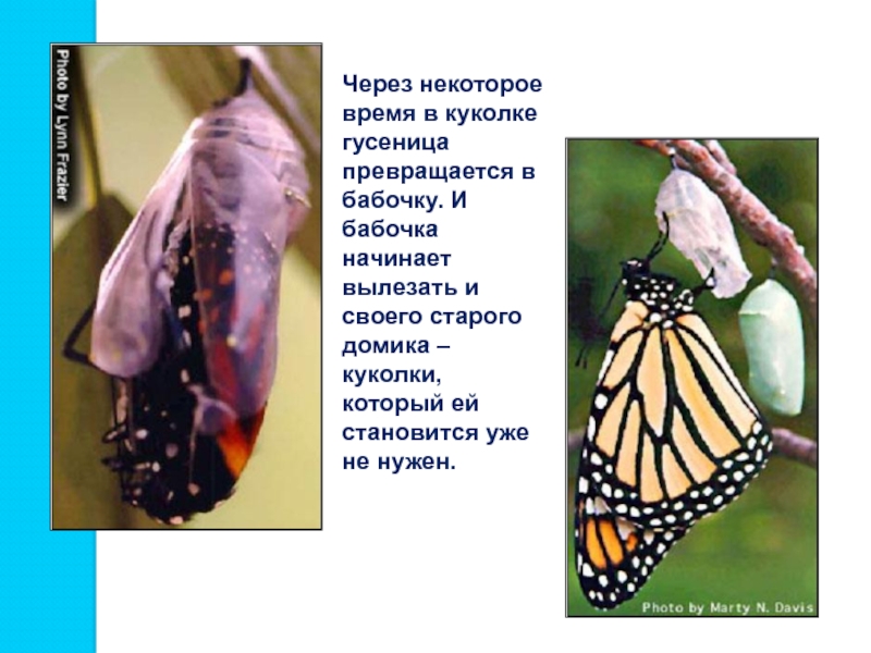 Слайд 20Через некоторое время в куколке гусеница превращается в бабочку. И бабочка