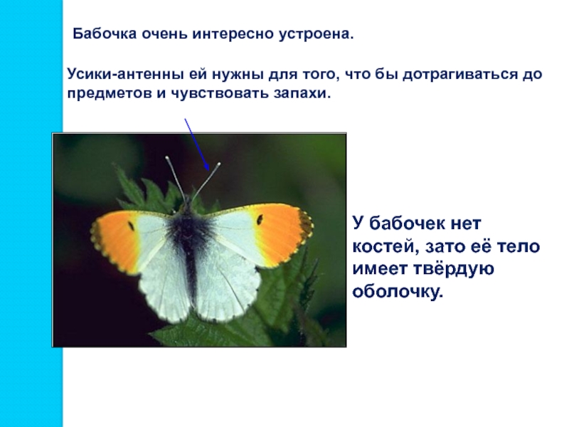 У бабочек нет костей, зато её тело имеет твёрдую оболочку.