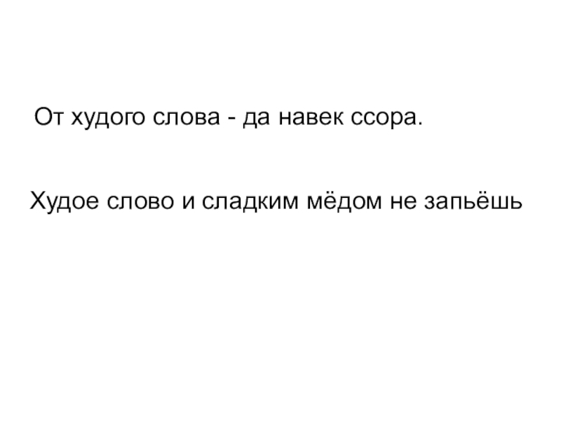 От худого слова - да навек ссора.Худое слово и сладким мёдом не запьёшь