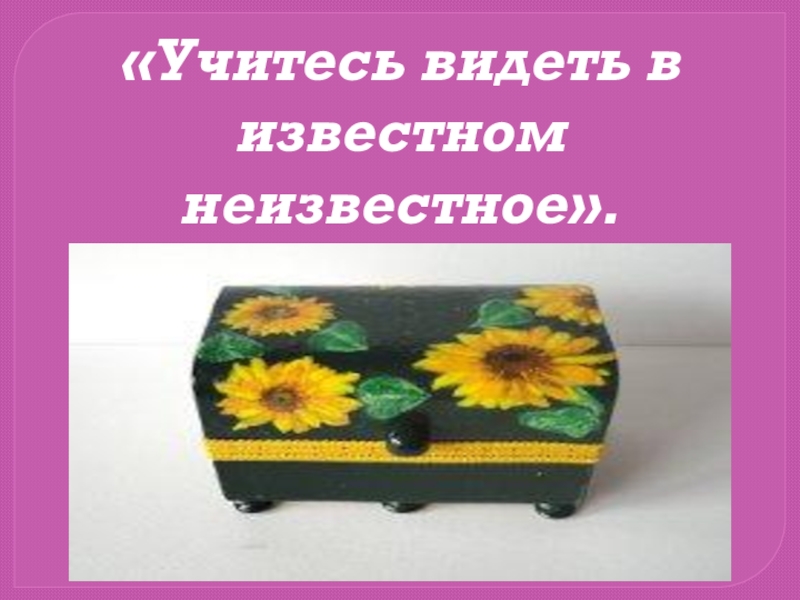 Слайд 12«Учитесь видеть в известном неизвестное».