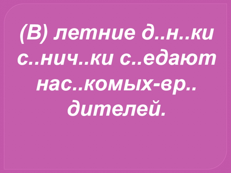 Слайд 10(В) летние д..н..ки с..нич..ки с..едают нас..комых-вр..дителей.