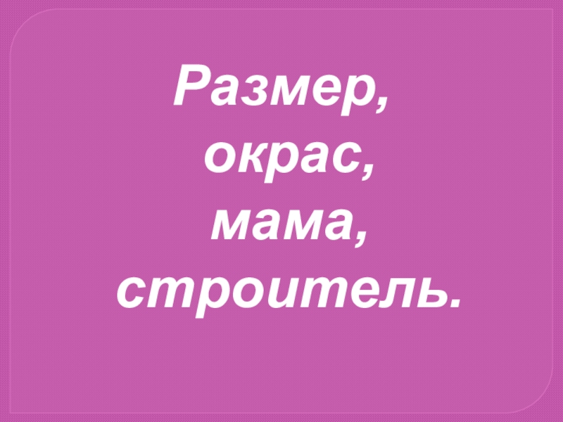Размер, окрас, мама, строитель.