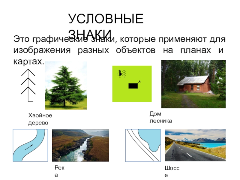УСЛОВНЫЕ ЗНАКИЭто графические знаки, которые применяют для изображения разных объектов на планах и картах.