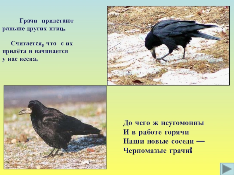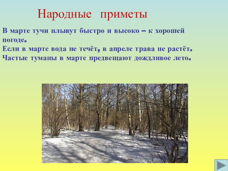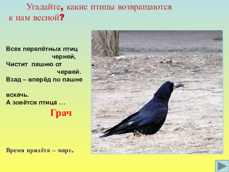 Время прилёта – март.