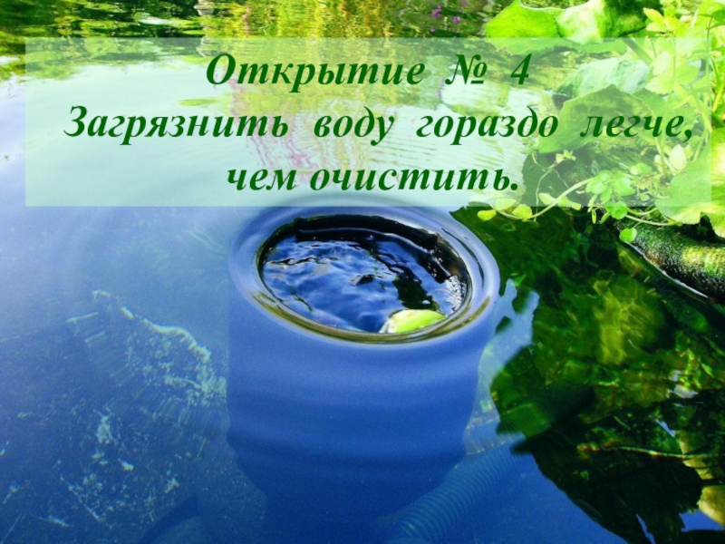 Открытие № 4 Загрязнить воду гораздо легче, чем очистить.