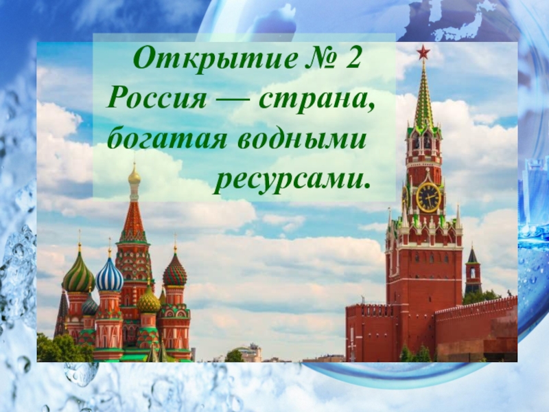 Открытие № 2 Россия — страна, богатая водными       ресурсами.