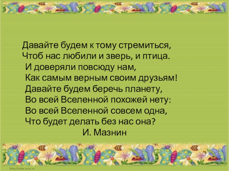 Это сайт презентаций, где можно хранить и обмениваться своими презентациями, докладами, проектами, шаблонами в формате PowerPoint с другими пользователями. Мы помогаем школьникам, студентам, учителям, преподавателям хранить и обмениваться учебными материалами.