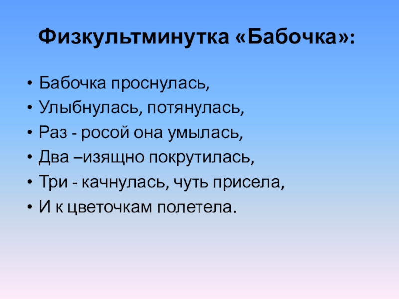 Слайд 7Физкультминутка «Бабочка»: