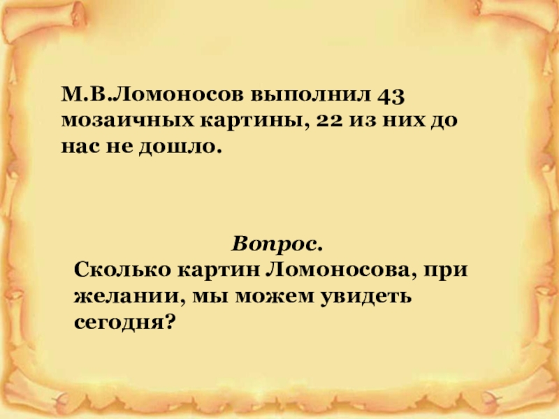 М.В.Ломоносов выполнил 43 мозаичных картины, 22 из них до нас не