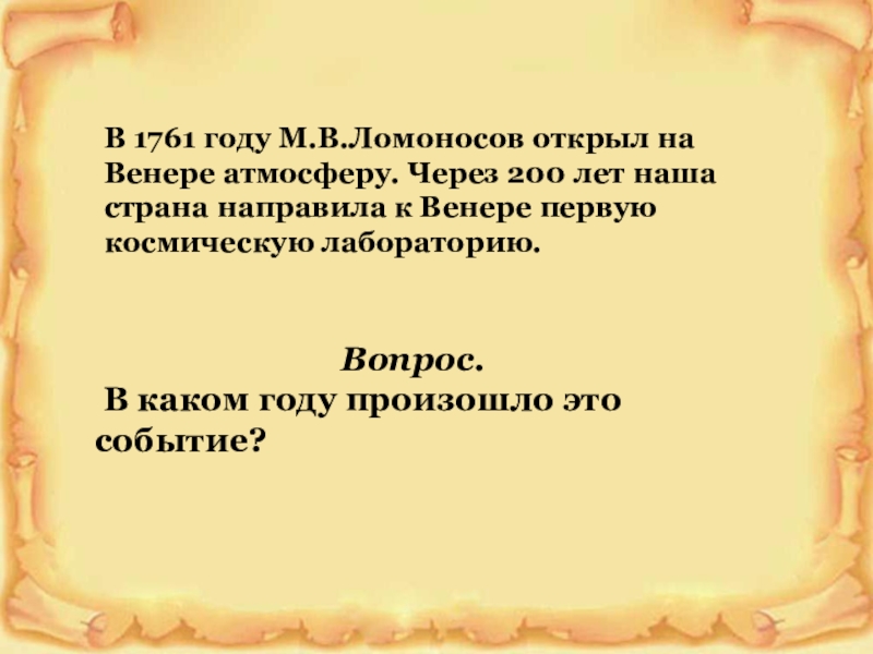 В 1761 году М.В.Ломоносов открыл на Венере атмосферу. Через 200