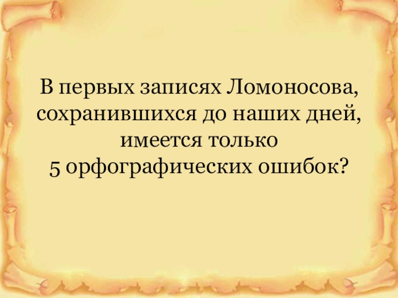 Слайд 31В первых записях Ломоносова, сохранившихся до наших дней, имеется только