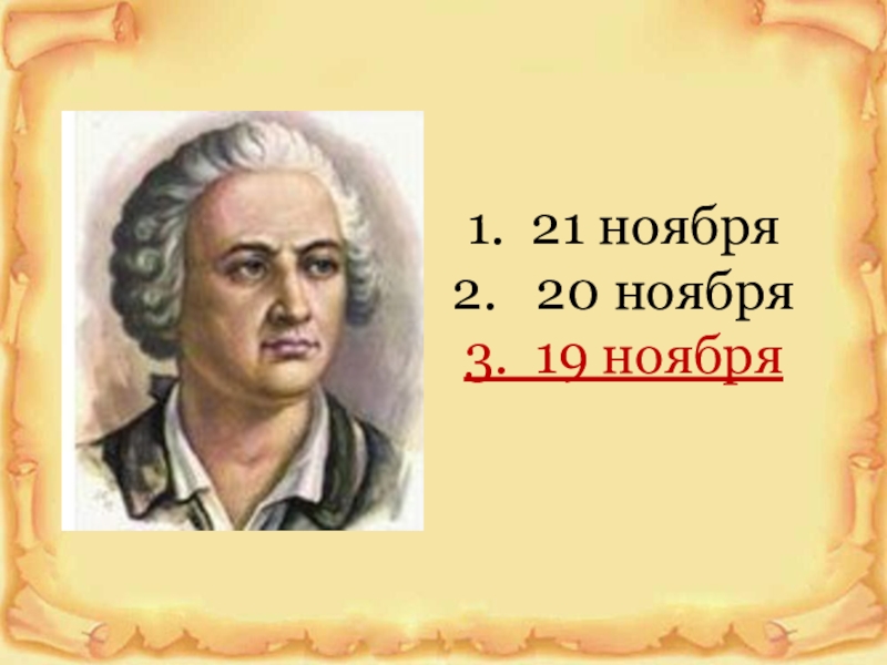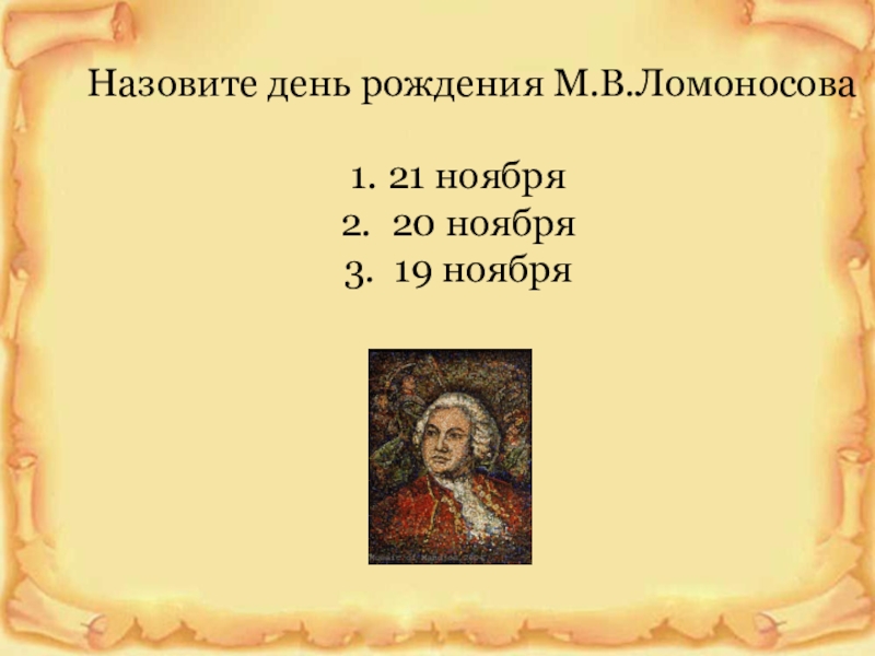 Слайд 3 Назовите день рождения М.В.Ломоносова