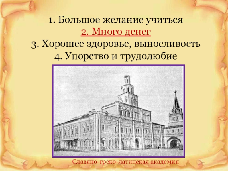 в Славяно-греко-латинскую академию, он пришёл учиться