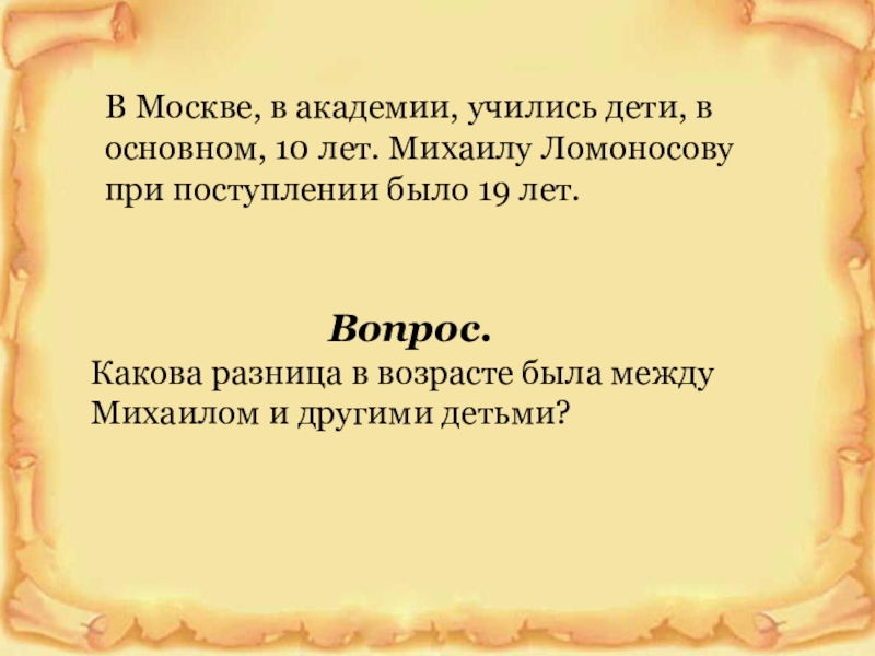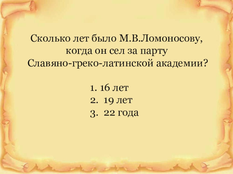 Слайд 13Сколько лет было М.В.Ломоносову,