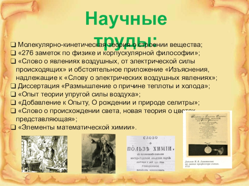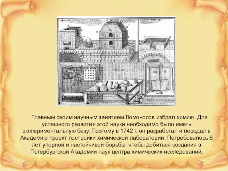 Слайд 69Главным своим научным занятием Ломоносов избрал химию. Для успешного развития этой