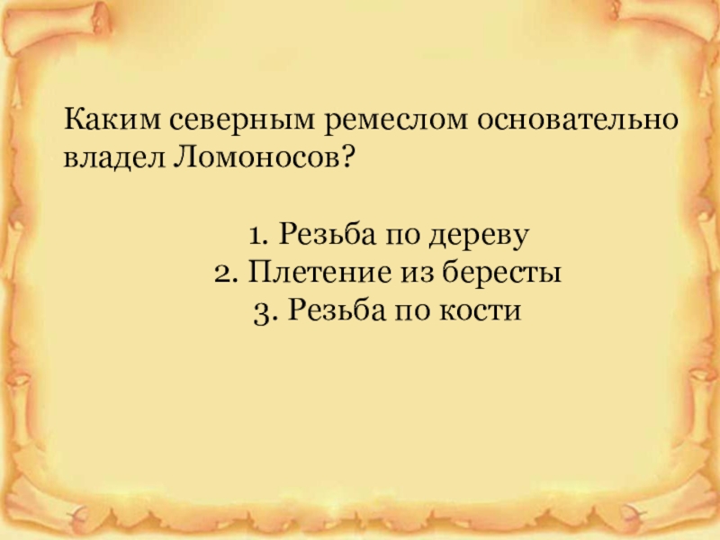 Слайд 15Каким северным ремеслом основательно владел Ломоносов?