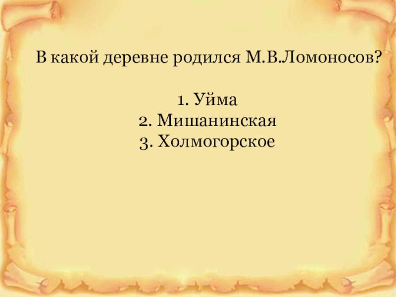 Слайд 5 В какой деревне родился М.В.Ломоносов?