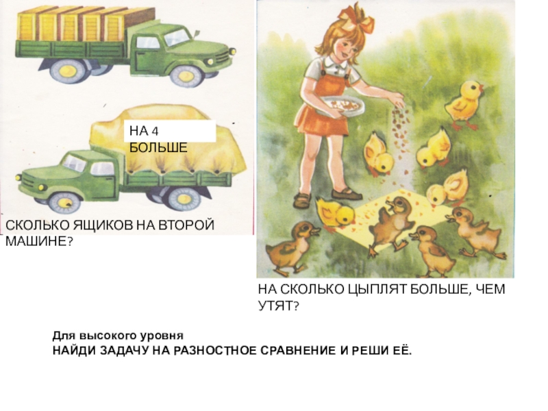 НАЙДИ ЗАДАЧУ НА РАЗНОСТНОЕ СРАВНЕНИЕ И РЕШИ ЕЁ.