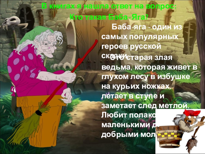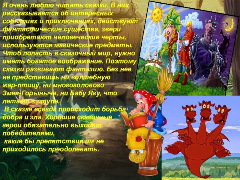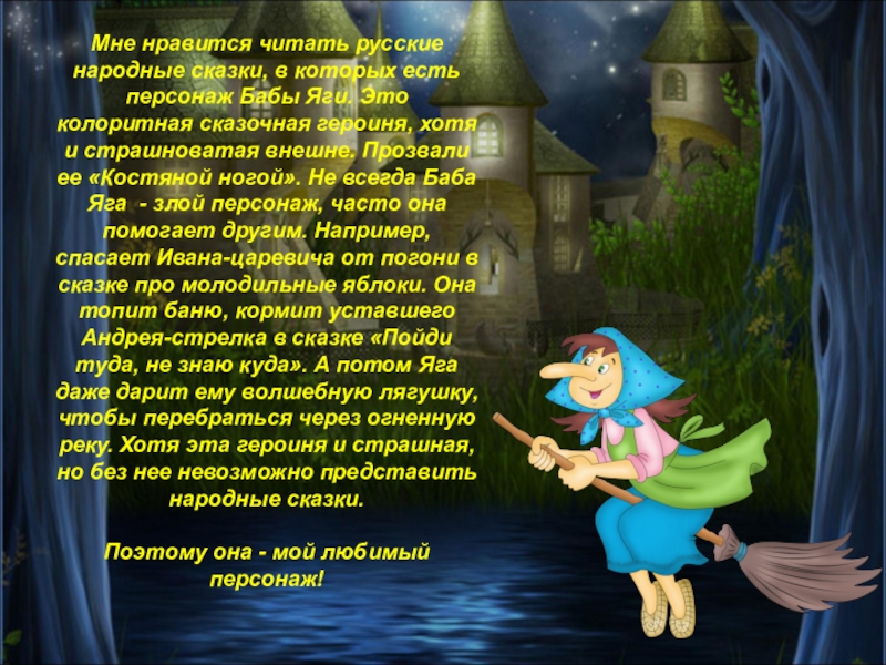 Слайд 7Мне нравится читать русские народные сказки, в которых есть персонаж Бабы