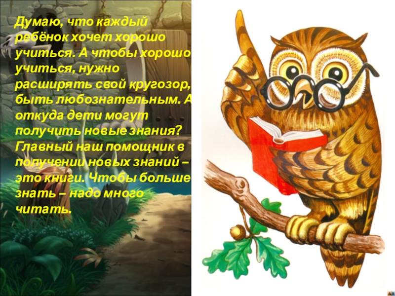нужно расширять свой кругозор, быть любознательным. А откуда дети могут получить новые знания? Главный наш помощник в получении новых знаний – это книги. Чтобы больше знать – надо много читать.