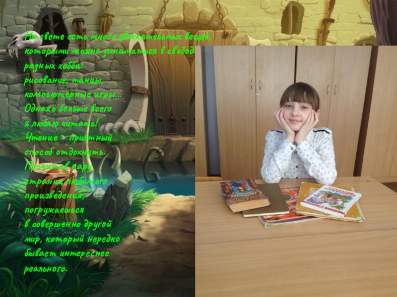 Слайд 5Я очень люблю читать сказки. В них рассказывается об интересных событиях
