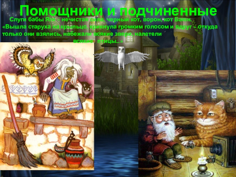 «Вышла старуха на крыльцо, крикнула громким голосом и вдруг – откуда только они взялись, набежали всякие звери, налетели