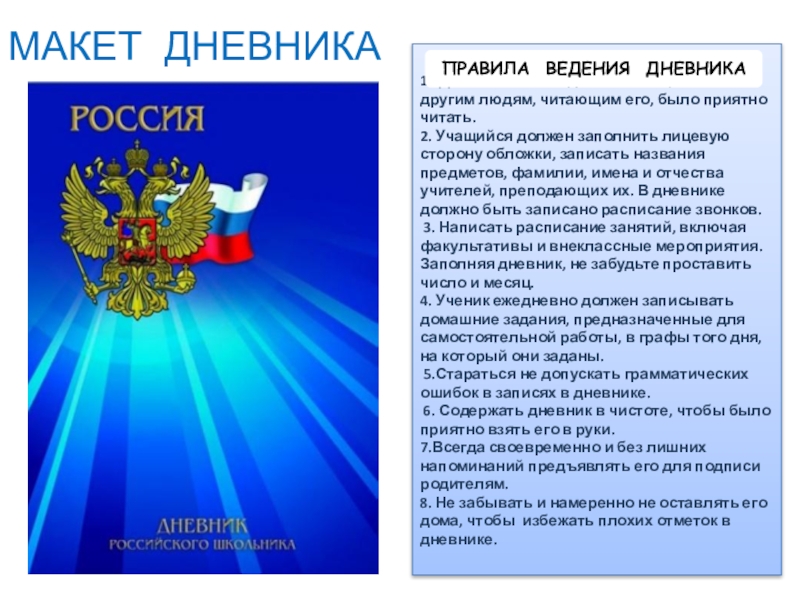 ПРАВИЛА ВЕДЕНИЯ ДНЕВНИКА