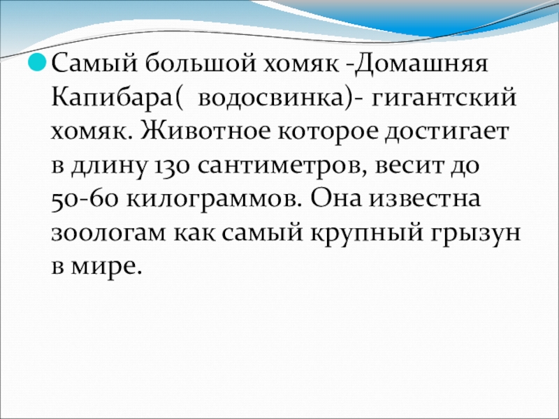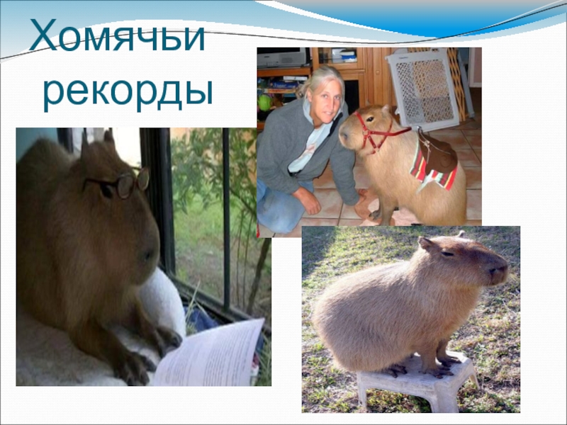 Слайд 11Самый большой хомяк -Домашняя Капибара( водосвинка)- гигантский хомяк. Животное которое достигает