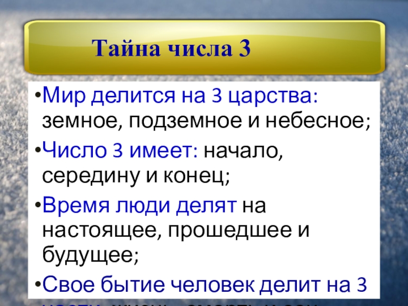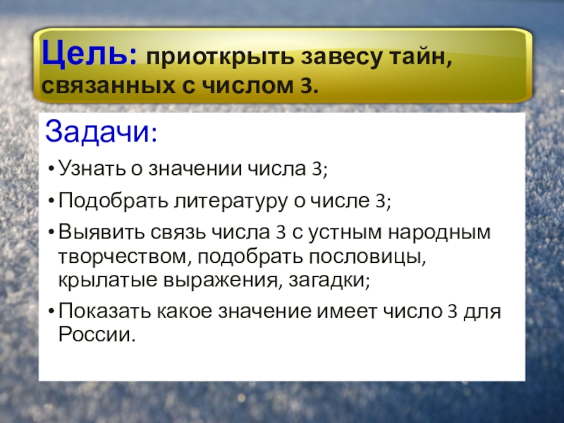 Цель: приоткрыть завесу тайн, связанных с числом 3.