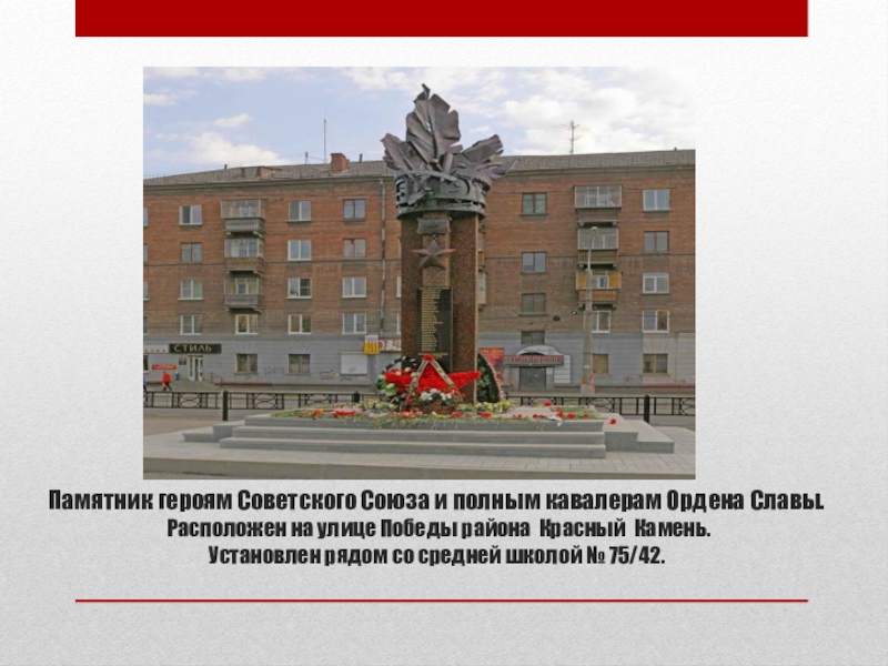 Слайд 9Памятник героям Советского Союза и полным кавалерам Ордена Славы. Расположен на