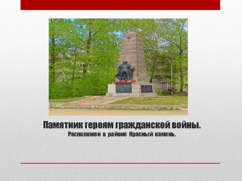 Слайд 8 Памятник героям гражданской войны. Расположен в районе Красный камень.
