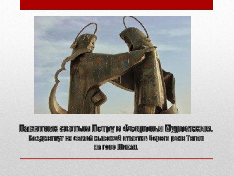 Слайд 10 Памятник святым Петру и Февроньи Муромским. Воздвигнут на самой высокой отметке берега