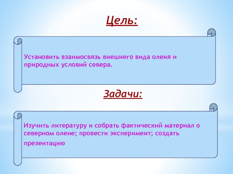 Установить взаимосвязь внешнего вида оленя и природных условий севера.