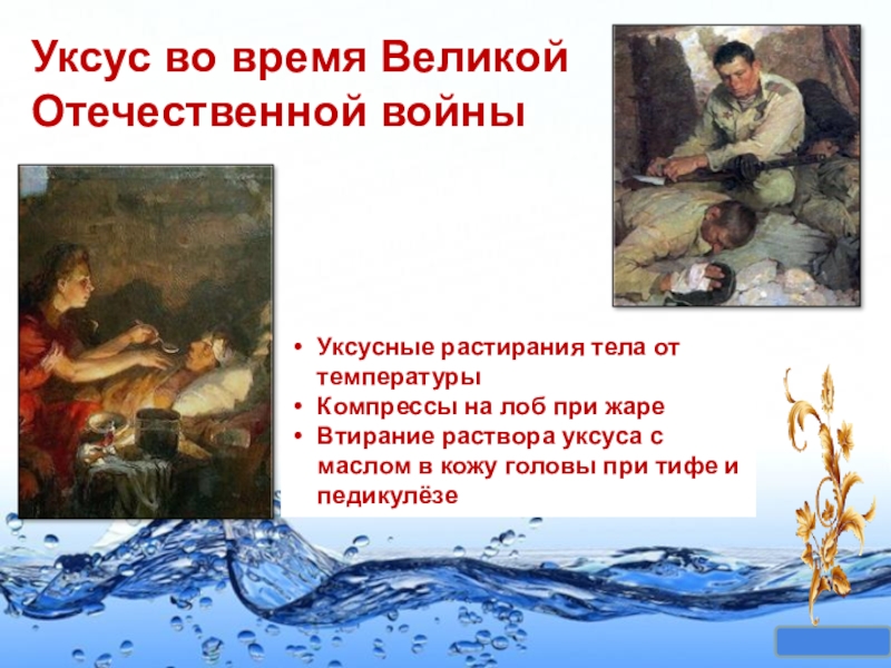 Яблочный уксус применялся для обработки ран раненым во время Первой мировой войны.